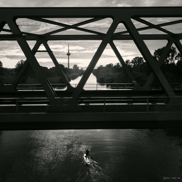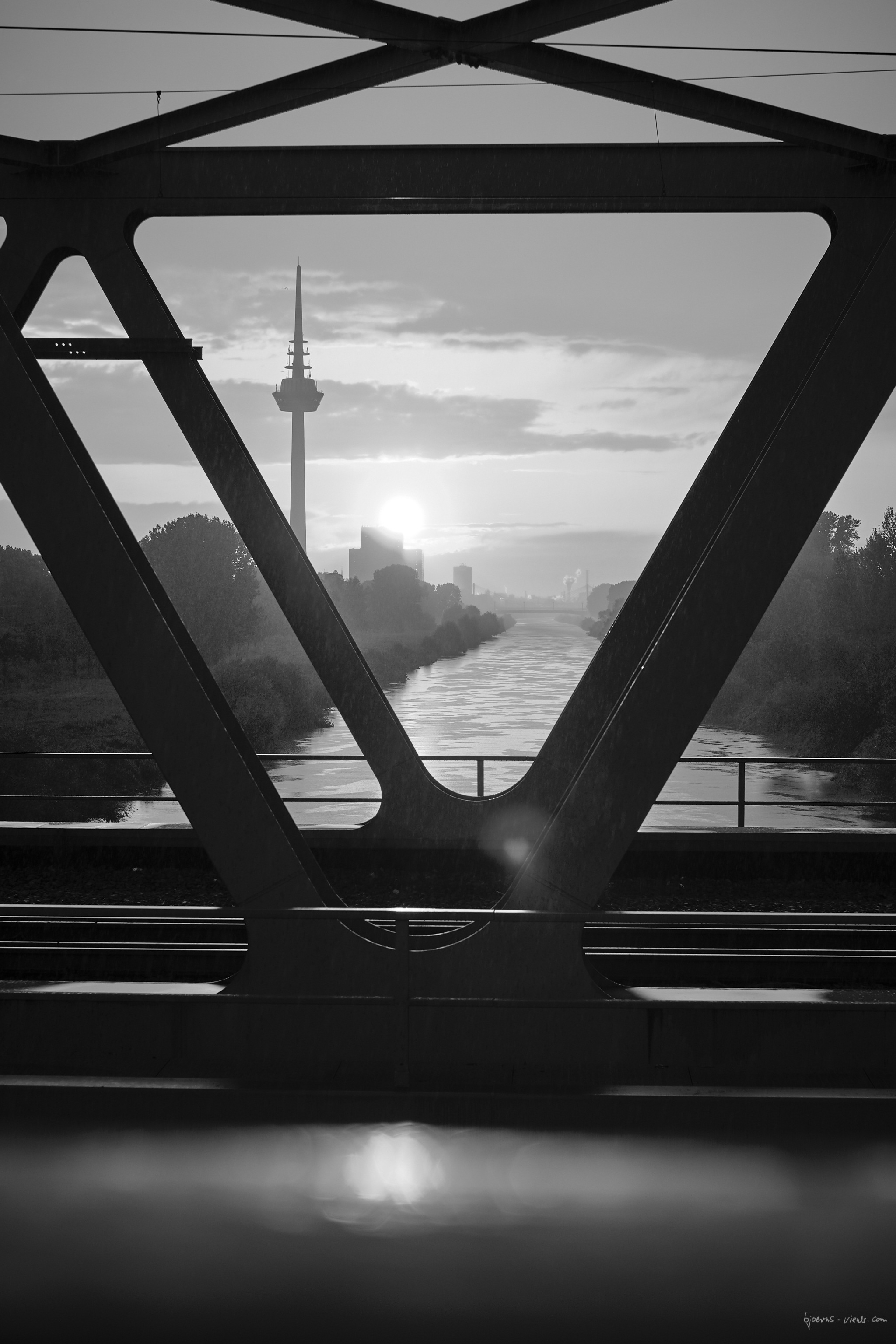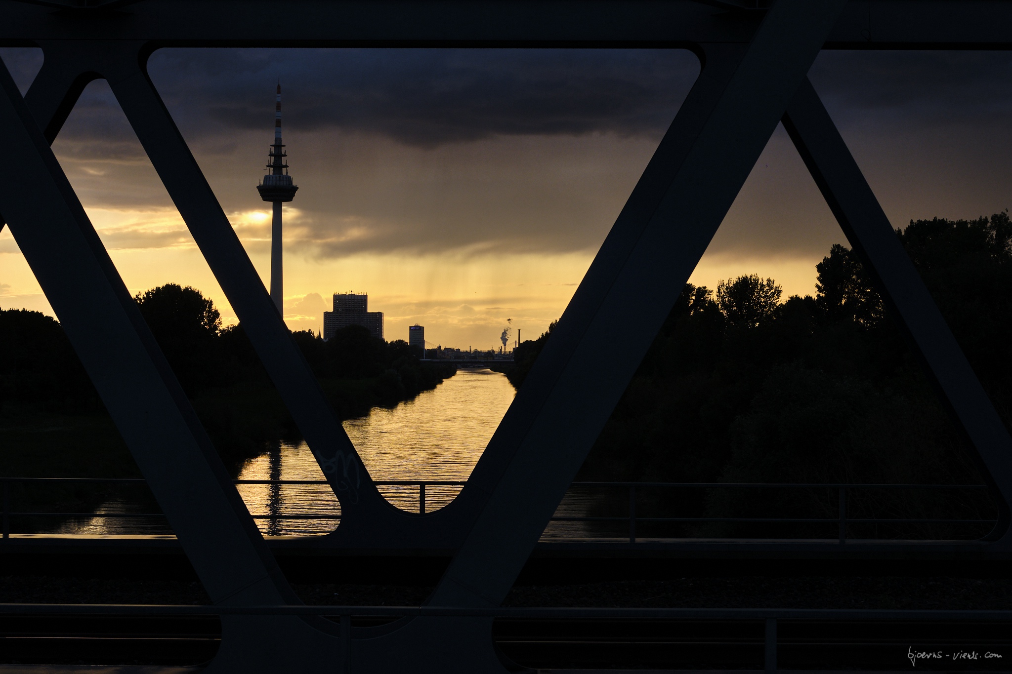 Als Ziel hatte ich die Schleuse, bzw. die Riedbahnbrücke in Mannheim ausgewählt. Sollte die Sonne nämlich doch wieder auftauchen, würde sie zu dieser Jahreszeit ziemlich genau in der Verlängerung des Neckars untergehen. Und gleichzeitig hat man einen tollen Blick in Richtung der Friedrich-Ebert-Brücke und dem Fernmeldeturm. Planung ist ja alles, jetzt musste es nur noch das Wetter gut mit mir meinen.